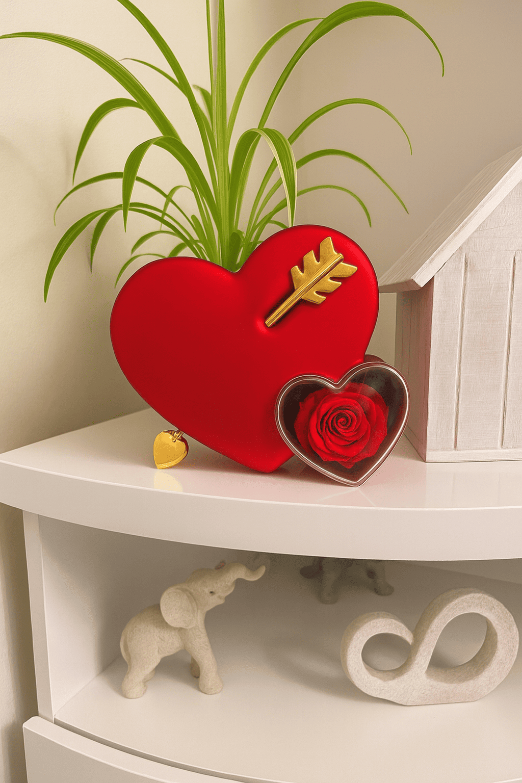 La rosa preservada en nuestra caja en forma de corazón está diseñada para mantenerse hermosa por sí sola. Solo disfruta de su encanto sin ningún cuidado adicional.